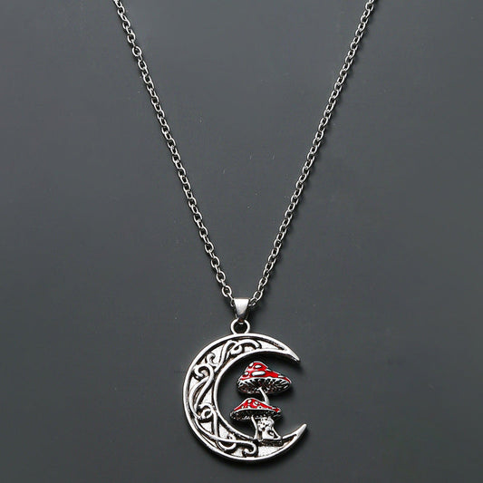 Retro Necklace Hip Hop Niche Moon Red Mushroom